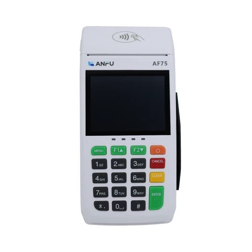 کارتخوان سیار ANFU AF75 از جدیدترین دستگاههای پایانه فروشگاهی است که به دلیل طراحی زیبا و وزن کم بسیار چشمگیر است. این دستگاه با اتصال به شبکه وای فای. با استفاده از دو سیم کارت و شبکه وای فای، این دستگاه در هر زمان و مکانی قابل استفاده است.
